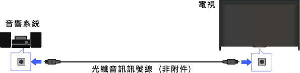 使用光纖音訊訊號線將具有數位輸入的音響系統(如家庭劇院系統)連接到電視機。
