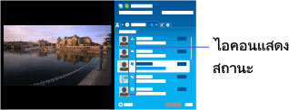 ไอคอนแสดงสถานะจะแสดงขึ้นมาที่ด้านข้างชื่อผู้ติดต่อของท่าน เพื่อให้ท่านสามารถทราบได้ว่าพวกเขาอยู่ในสถานะที่พร้อมสนทนาหรือไม่