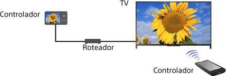 Através da habilitação da função de renderização, você pode reproduzir arquivos de fotos/músicas/vídeos em um controlador (por ex., câmera digital) na tela da TV, operando o dispositivo diretamente. Além disso, um dispositivo móvel (por exemplo, smartphone) pode funcionar como controle remoto da TV através da rede doméstica.
