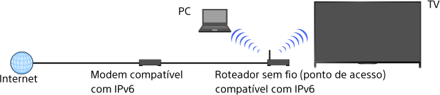 Se o serviço de seu provedor for compatível com IPv6, você pode conectar essa TV à Internet por IPv6.