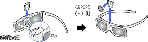 第一次使用主動式3D眼鏡時,請移除電池的絕緣片。