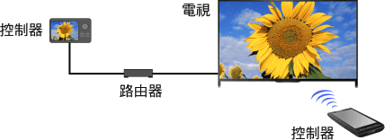 啟用Renderer功能時,直接操作裝置可以在電視機螢幕上播放控制器(如數位相機)中的相片/音樂/視訊檔案。也可透過家用網路將行動裝置(如智慧型電話)用作電視機的遙控器。