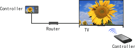 By enabling the renderer function, you can play photo/music/video files in a controller (e.g. digital still camera) on the TV screen by operating the device directly. Also, a mobile device (e.g. smartphone) can work as the TV’s remote via the home network.