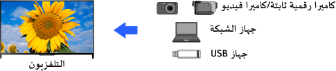 قم بتوصيل جهاز USB أو جهاز الشبكة بالتلفزيون.