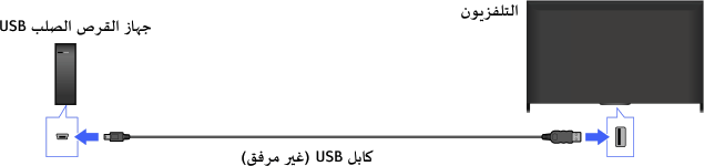 - لا يتم دعم توصيل جهاز الأقراص الصلبة USB عبر موزع USB. قم بتوصيل الجهاز بالتلفزيون مباشرةً.