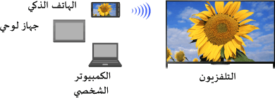 يمكنك عرض شاشة جهاز الهاتف المحمول (مثل الهاتف الذكي أو الجهاز اللوحي) على التلفزيون لمشاهدة الصور، مقاطع الفيديو أو المواقع.