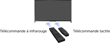 Pour commander le téléviseur, vous pouvez utiliser la télécommande à infrarouge (IR) ou la télécommande tactile. La fourniture d’une télécommande tactile avec le téléviseur dépend du modèle/de la région/du pays. Une télécommande tactile est disponible en option.