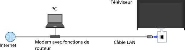 Une connexion LAN filaire permet d’accéder à Internet et à votre réseau domestique. Raccordez un câble LAN à votre téléviseur.