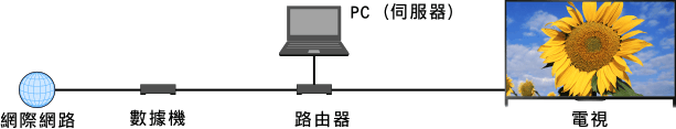 您可以播放儲存在與電視機連接的同一家庭網路的伺服器(如PC)上的相片/音樂/視訊檔案。