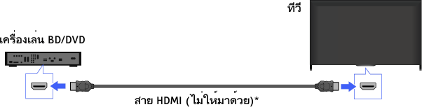 แนะนำให้ใช้การเชื่อมต่อ HDMI เพื่อให้ได้คุณภาพของภาพที่ดีที่สุด ถ้าเครื่องเล่นแผ่น BD/DVD ของท่านมีพอร์ต HDMI (ช่องต่อ) ให้เชื่อมต่อเข้ากับช่องนี้โดยใช้สาย HDMI