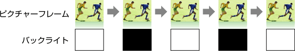 [シーンセレクト]の設定に応じてバックライトの駆動方式を自動調整し、消費電力を抑えることができます。