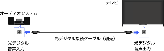 - お使いのオーディオシステムによっては、[デジタル音声出力設定]が必要な場合があります。設定のしかたについて詳しくは、決定ボタンを押して「光音声出力を設定する」をご覧ください。