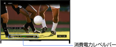 画面表示ボタンを押すと、消費電力を示すレベルバーが表示されます。[バックライト]、[消費電力]、[明るさセンサー] などの設定に対応して消費電力レベルバー表示が変わります。