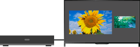 - 2画面(左右画面)時に、左/右画面にそれぞれ異なる垂直周波数の信号(例:左画面 24p、右画面 60i)を表示させた場合、右画面映像の滑らかな動きが損なわれることがあります。