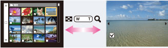 选择影像时,您可以在索引和单幅影像模式之间切换在索引模式下按W/T(变焦)按钮的