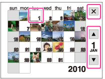 再次按该按钮以显示具有更多影像的索引画面。在以[日期视窗]播放期间,再次按该按钮以日历观看影像。