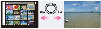 选择影像时,您可以在索引和单幅影像模式之间切换在索引模式下将W/T(变焦)杆转动到T侧(