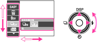 跟随画面转动控制盘或按盘的上/下/右/左侧移动选择框。