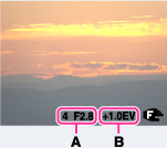 设定快门速度和光圈(F值)在画面上以EV值显示设置与相机认为适当的曝光之间的差异。