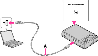 使用多用途USB连接线(附件)(A)将相机连接到电脑。