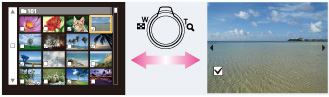 选择影像时,您可以在索引和单幅影像模式之间切换在索引模式下将W/T (变焦)杆转动到T侧(