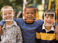 在选择了人脸检测框的情况下使用笑脸快门功能时,只对所选人脸进行笑脸检测。