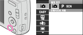 ON/OFF (전원) 버튼을 누르고 카메라를 촬영 모드로 설정하여 주십시오.