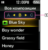 В разделе списка отображаются начальные буквы названий композиций, альбомов и т.д.