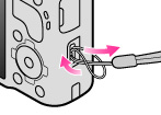 끈을 부착하고 고리 안으로 손을 넣어서 낙하로 인해 카메라가 손상되지 않도록 하여 주십시오.