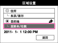将相机设定为您的目的地时间使用。设定目的地区域。