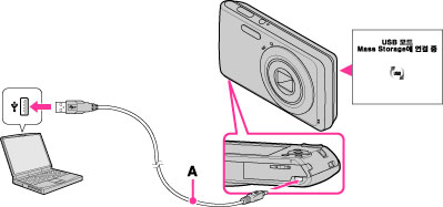전용 USB 케이블 (A)을 사용해서 카메라를 컴퓨터에 연결하여 주십시오.