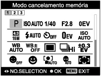 (Modo cancelamento memória) após concluir as definições de fotografia, as definições registadas recebem prioridade e as definições originais podem tornar-se inválidas. Verifique os indicadores no ecrã antes de fotografar.