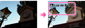 (Crepúsculo), (Retr.crepúsculo), (Luz de Fundo) ou (Retrato com Luz de Fundo, muda automaticamente a definição e fotografa outra imagem.