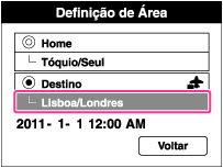 no botão de controlo para seleccionar a área desejada, depois seleccione Hora de Verão usando