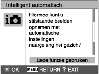 Als u [Deze functie gebruiken] selecteert, schakelt de camera automatisch over naar de geselecteerde functie.