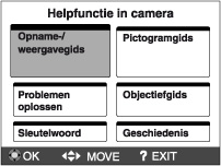 Deze camera is voorzien van een ingebouwde functiegids. Hierin kunt u de functies van de camera opzoeken wanneer u ze nodig hebt.