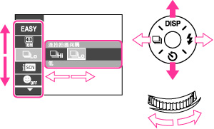 (连拍设置)。朝各图标的方向按控制按钮以进入各功能的设置画面。