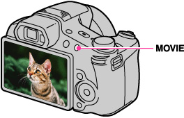 MOVIE按钮不管模式旋钮处于任何位置,都可以通过按MOVIE按钮开始录制动态影像。如果想要立即开始录制动态影像,不改变模式旋钮的位置便按下MOVIE按钮。