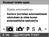 Kamerassa on sisäinen toiminto-opas. Sen avulla voit etsiä kameran toimintoja tarpeen mukaan.