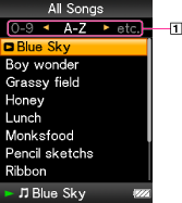 V časti so zoznamom sa zobrazujú iniciály skladby, albumu atď.
