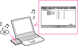 Импортираните песни се съхраняват в папка [моята музика] (Windows XP/Windows 7) или папка [Музика] (Windows Vista) на компютъра. Щракнете върху раздел [Библиотека] в прозореца на Windows Media Player, за да ги намерите.