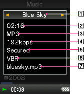 Показва подробна информация за песен, като например време за изпълнение, аудио формат, битрейт и име на файл [Подробности].