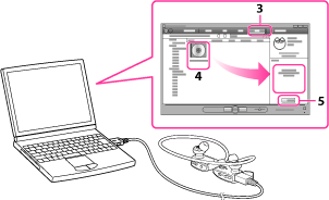 Indítsa el a Windows Media Player alkalmazást, majd csatlakoztassa „WALKMAN” készülékét a számítógéphez az USB-kábel segítségével (mellékelve).