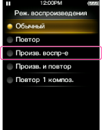 [На Экран Воспроизв.] могут не отображаться.Например, действия по установке для параметра [Реж. воспроизведения] значения [Произв. воспр-е] показаны далее.