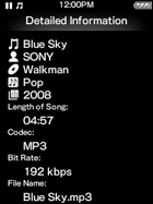 Opţiuni care apar pe ecranul cu lista fişierelor muzicale
