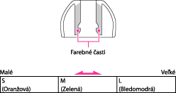 Na slúchadlách sú z výroby nasadené nástavce veľkosti M. Ak sa vám zdá, že nástavce veľkosti M vám nesedia v ušiach správne, vymeňte ich za nástavce veľkosti S alebo L (dodané). Skontrolujte veľkosť nástavcov podľa farby vnútri nástavca.