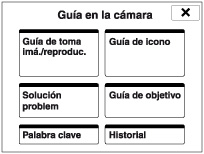 Esta cámara está equipada con una guía de instrucciones incorporada. Esto le permite buscar las funciones de la cámara de acuerdo con sus necesidades.