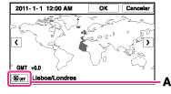 Toque el icono de horario de verano (A), después seleccione Horario verano Activar/Desactivar.