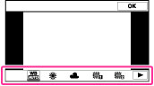 (一键设定)模式中的白颜色变成基本白颜色。当[自动 ]和其它设置无法获得正确色彩时,使用该模式。 |
