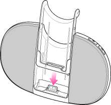 Ostohetkellä ”WALKMAN”-soittimen kiinnike on kiinnitetty kaiuttimeen. Jos kiinnike irtoaa, työnnä se takaisin kaiuttimeen kuvan mukaisesti niin, että se napsahtaa paikalleen.